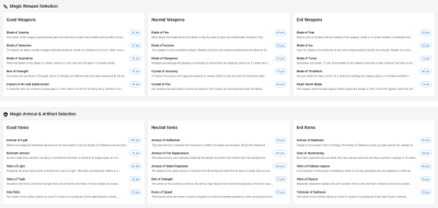 If your Character is neutral or evil, and you choose an Evil weapon for them, it may be affected by a Ban Quality. You can determine Ban Quality directly in the application (see Tables).